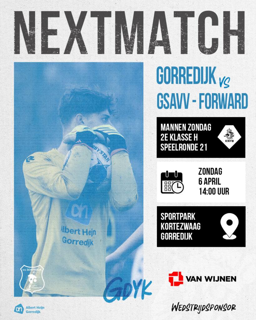Zondag neemt Gorredijk het op tegen de nummer zes van de ranglijst: GSAVV Forward. De studenten uit Groningen, eerder dit seizoen nog verslagen op eigen terrein, reizen dit keer af naar Friesland.