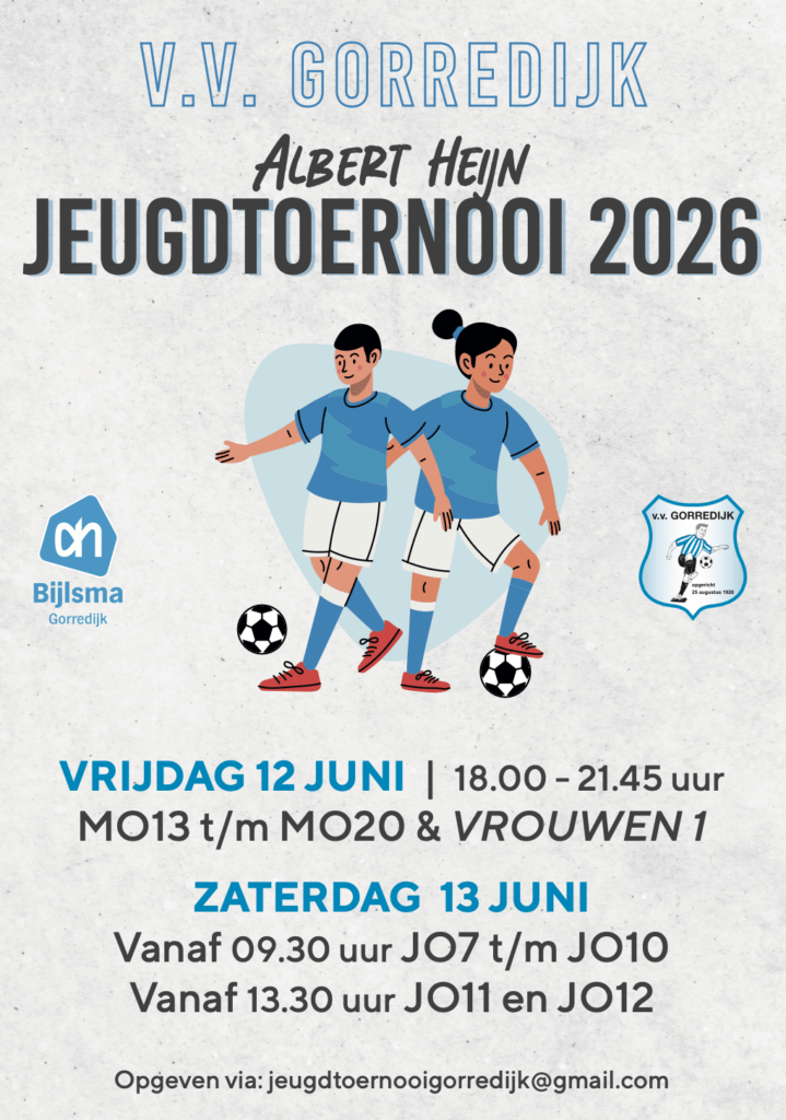 Aanmeldingen en vragen kunnen worden gestuurd naar: jeugdtoernooigorredijk@gmail.com.